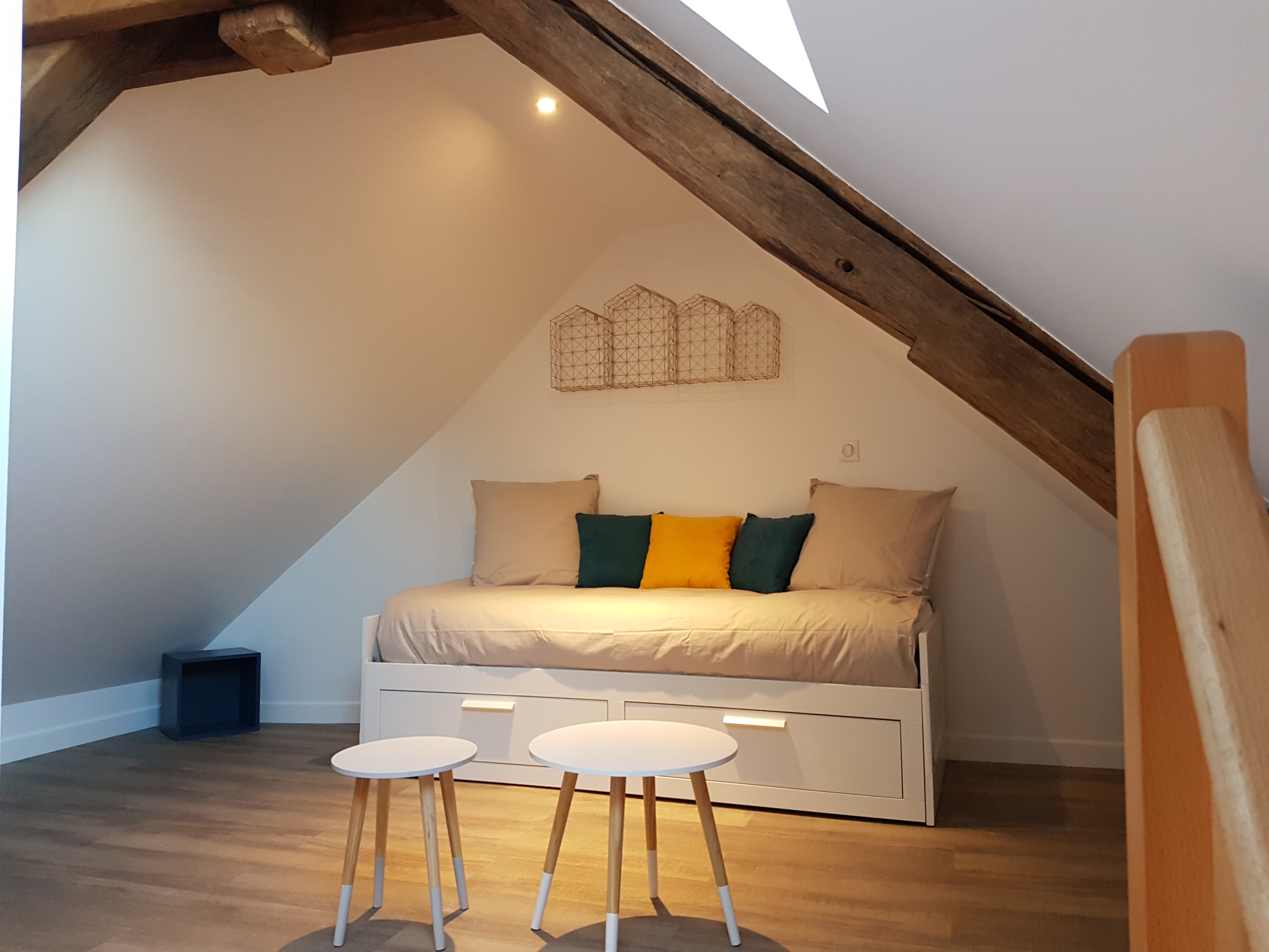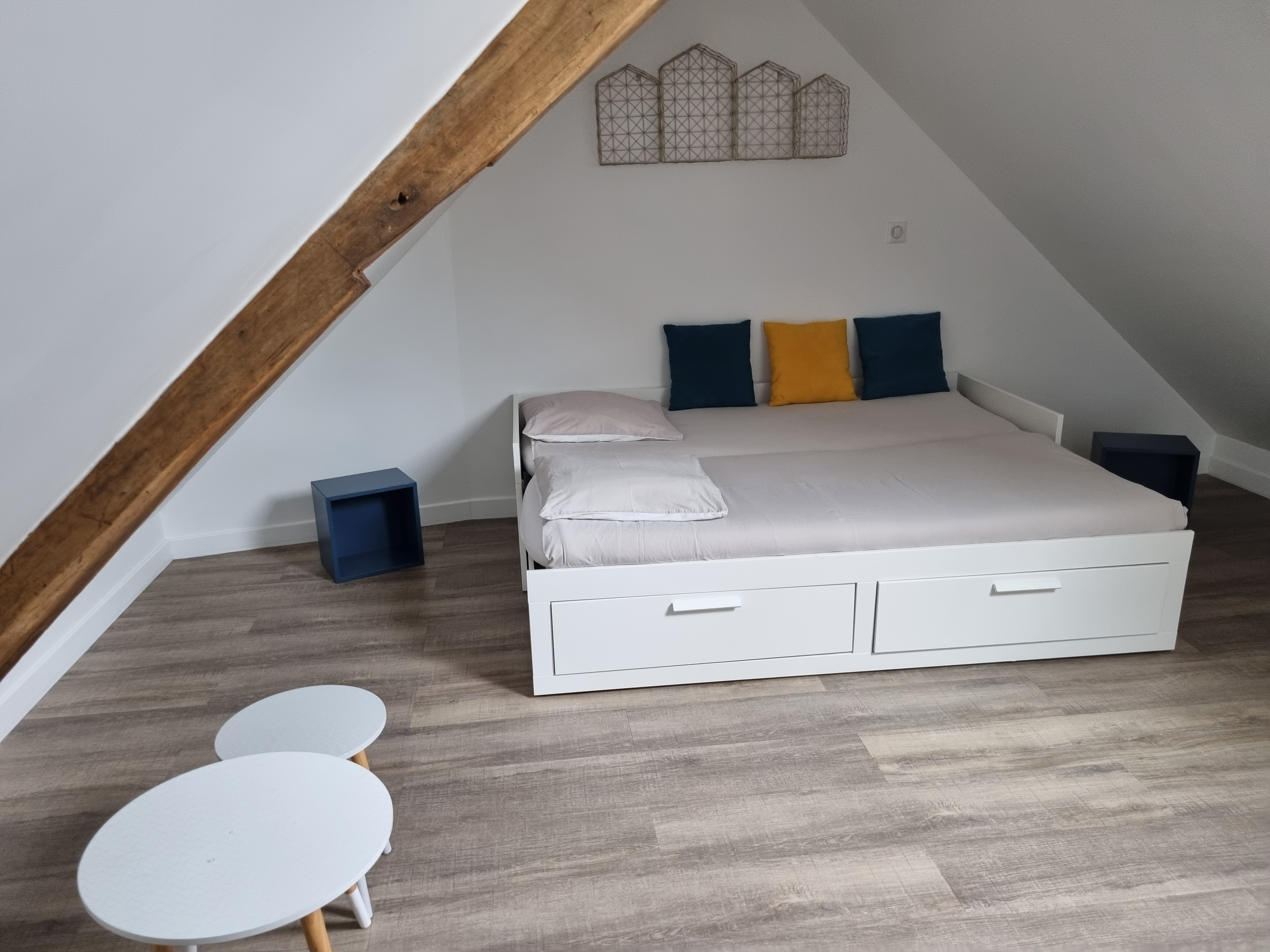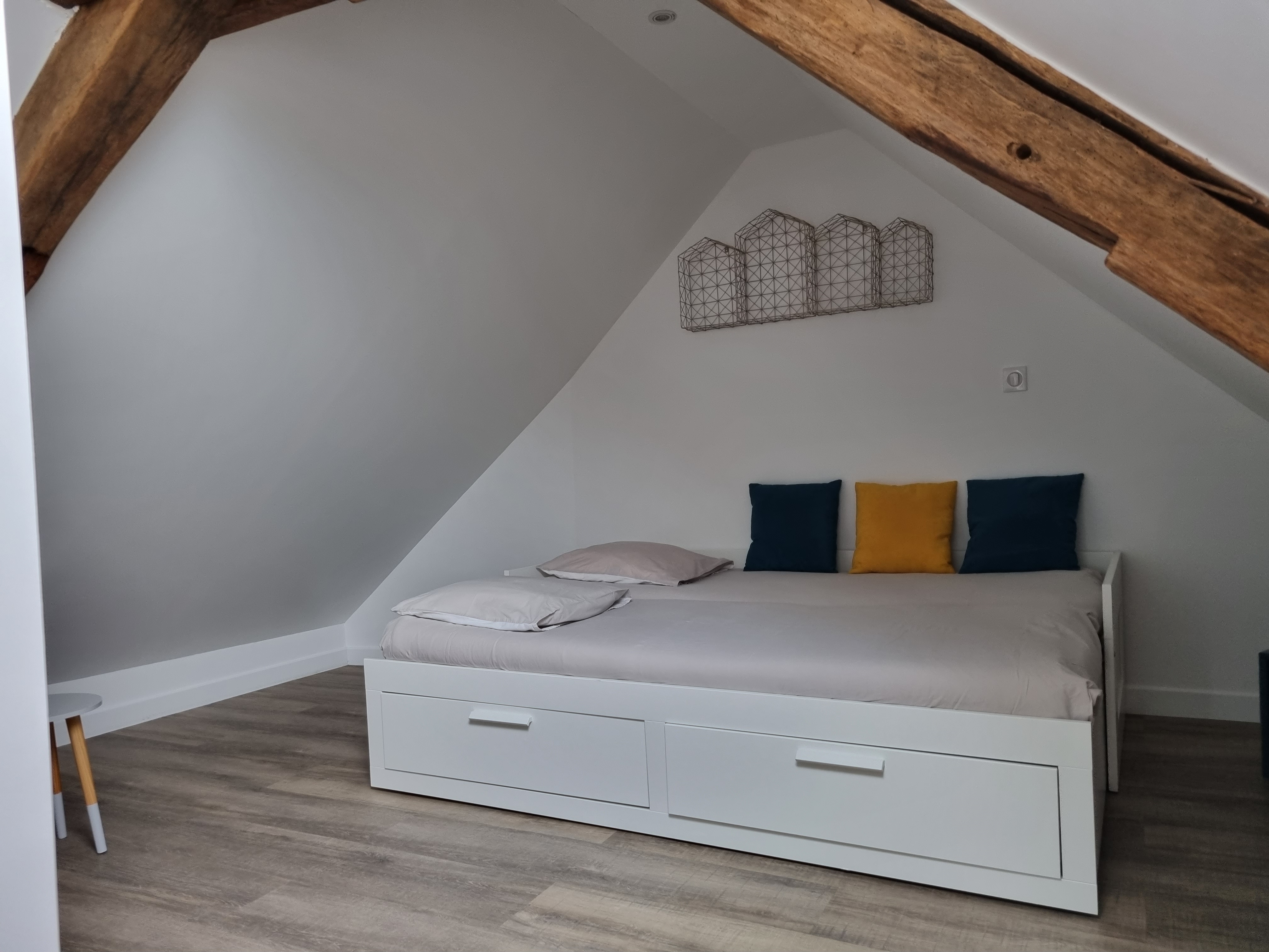 Au deuxième étage, une chambre sous combles offre un lit double 140*190, idéalement pour des enfants, mais qui peuvent également accueillir des adultes. La literie est neuve et confortable.