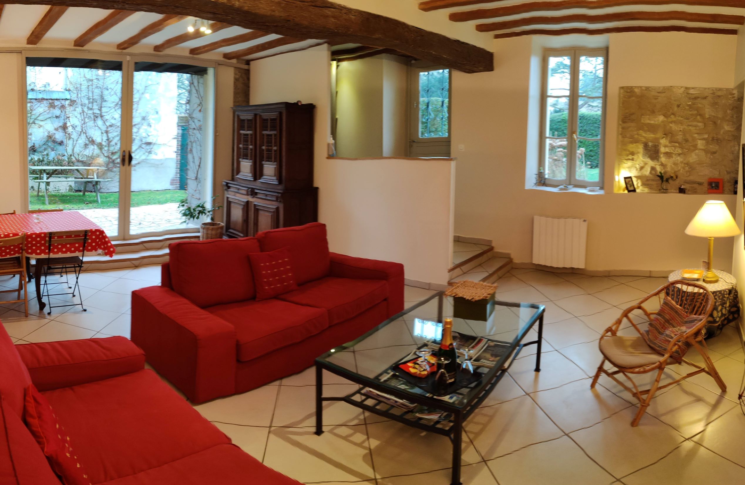 Gîte indépendant de 4 chambres pour 8 personnes (lits de 90 cm et de 180 cm). Tout le confort d'une maison refaite à neuf en 2013: une grande cuisine complétement aménagée et équipée (lave vaisselle, four, micro-onde, cafetière...) avec un coin salle à manger (TV). Salle de bain avec baignoire balnéothérapie, 2 salles de douche, 2 wc. Lave-linge, sèche-linge, WIFI, téléphone...Venez profitez du jardin clos de 500 m² et sa terrasse, d'un parking privé pour 2 ou 3 voitures.